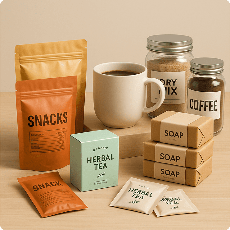 Shelf-stable products you can store and enjoy anytime-snacks, coffee, soaps, dry mixes, a box of herbal tea or a set of handmade soap for kitchen or bathroom shelf.