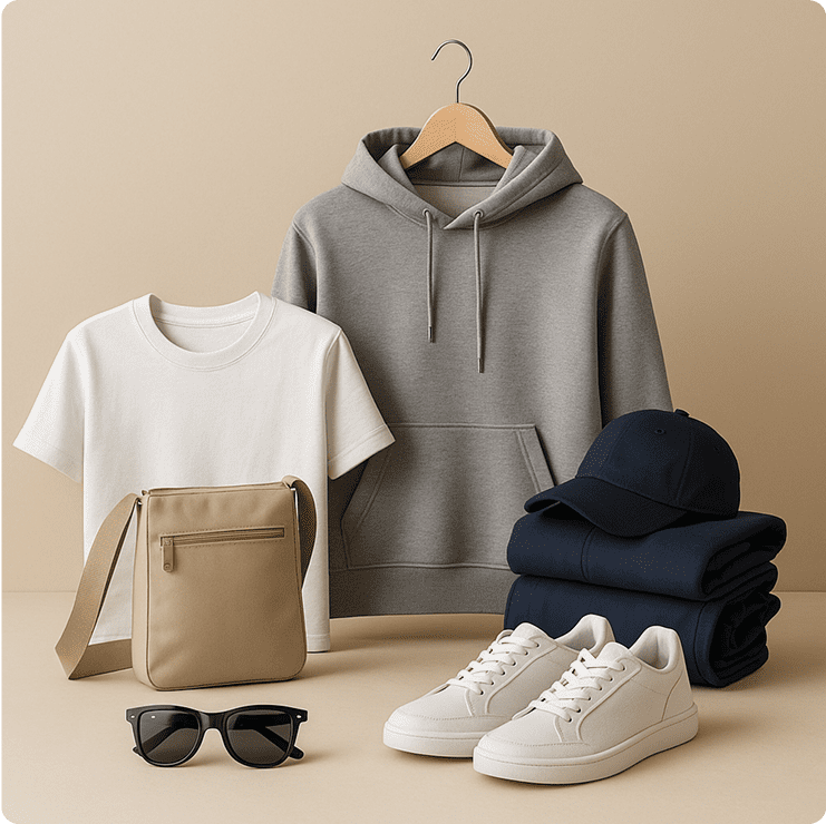 Trendy wearables and add-ons for all occasions—tees, hoodies, bags, sunglasses, a comfy pair of joggers with a matching cap for your weekend outings.